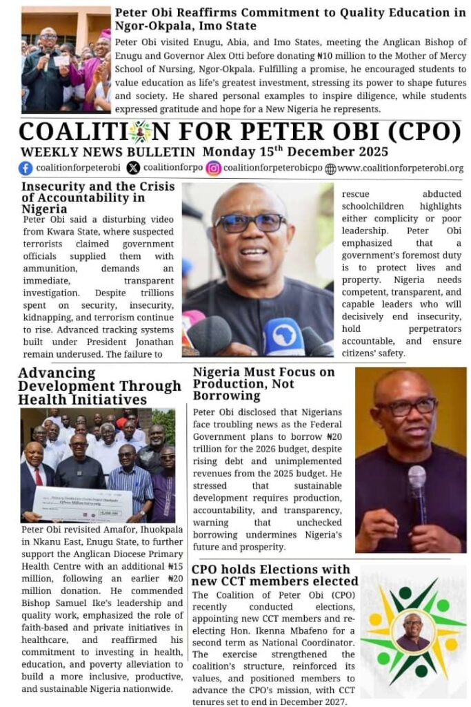 OBIdient NEWS… A Weekly News Bulletin of COALITION FOR PETER OBI – CPOBy Coalition for Peter Obi / December 15, 2025 For more News……www.coalitionforpo.org