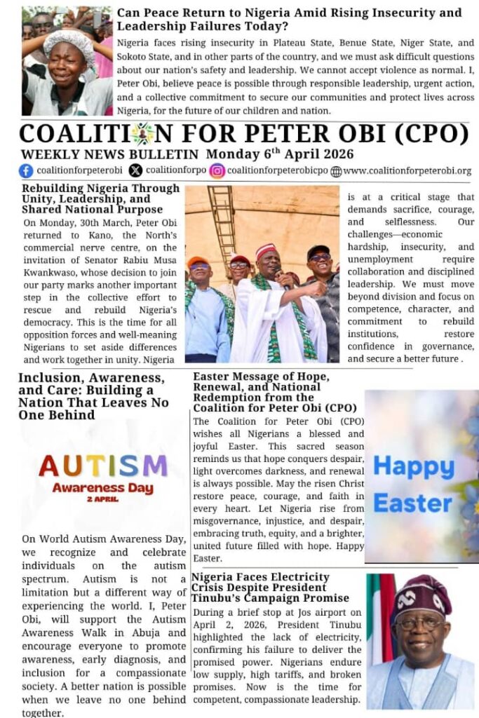 OBIdient NEWS…A Weekly News Bulletin of COALITION FOR PETER OBI – CPOBy Coalition for Peter Obi / April 6, 2026 For more News visit our website…www.coalitionforpo.org